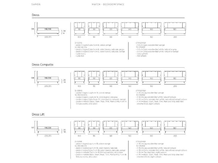 - DRESS LIFT Giroletto H.20cm con piedi alti H.18cm per facilitare la pulizzia sotto al letto.