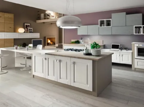 Clicca e scopri un universo di di Cucine in Muratura con isola: la cucina Carola laccato Bianco Arrex in legno ti aspetta!